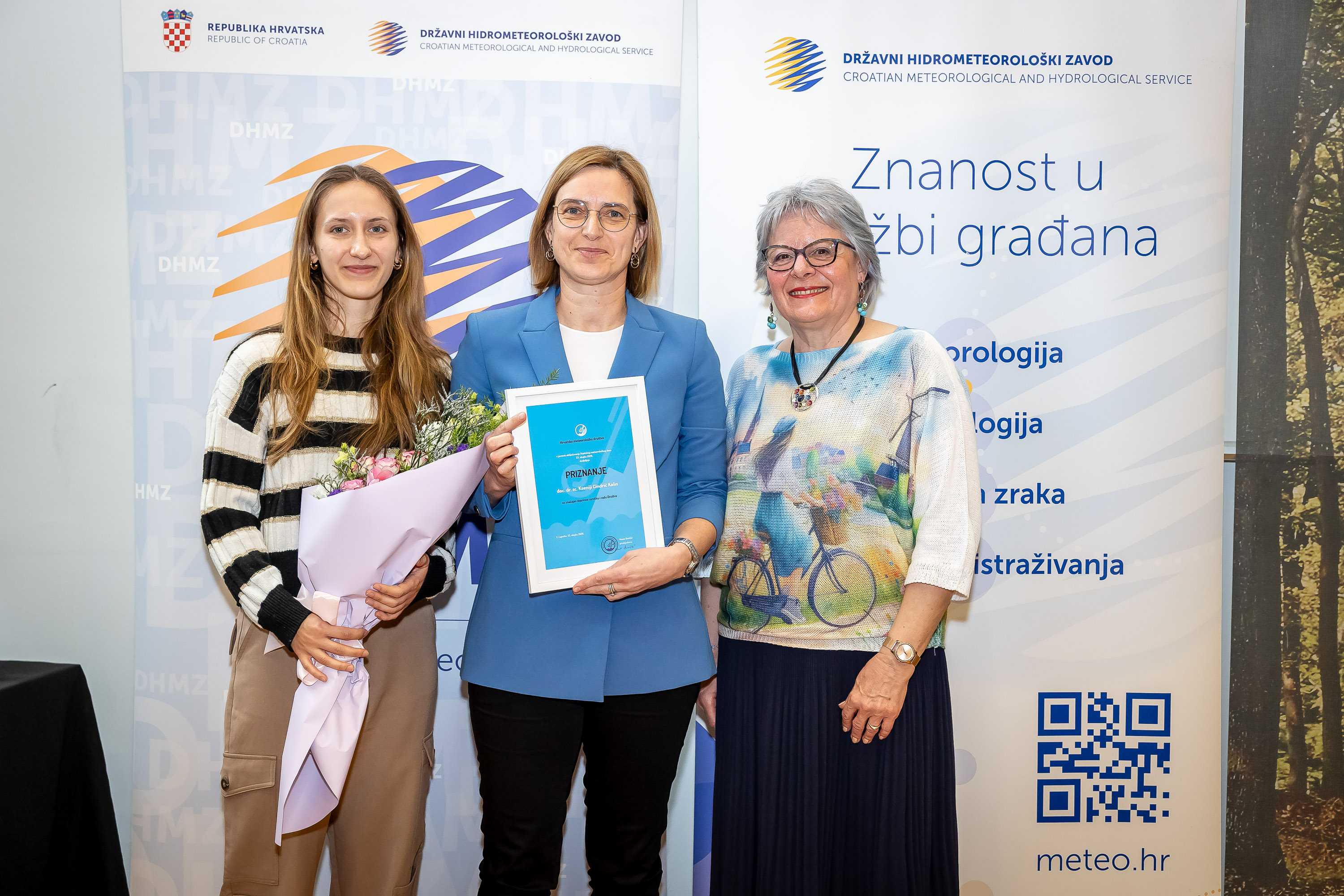 Zbog svega navedenog, Hrvatsko meteorološko društvo odlukom Upravnog odbora Kseniji Cindrić Kalin dodjeljuje priznanje za značajan doprinos razvitku i radu Društva.