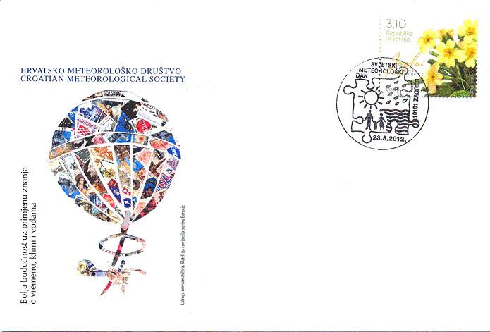 Hrvatsko meteorološko društvo već niz godina uz ostale manifestacije obilježava Svjetski meteorološki dan, 23. ožujka izdavanjem prigodne poštanske kuverte. Uz kuvertu, toga je dana u pošti (41101, danas 10101 Zagreb) u upotrebi i prigodni poštanski žig, koji se u upotrebu stavlja također na zahtjev HMD-a. Uz grafičko rješenje na svim je kuvertama uz naziv izdavača (Hrvatsko meteorološko društvo i Državni hidrometeorološki zavod) i moto pod kojim se Svjetski meteorološki dan slavi.